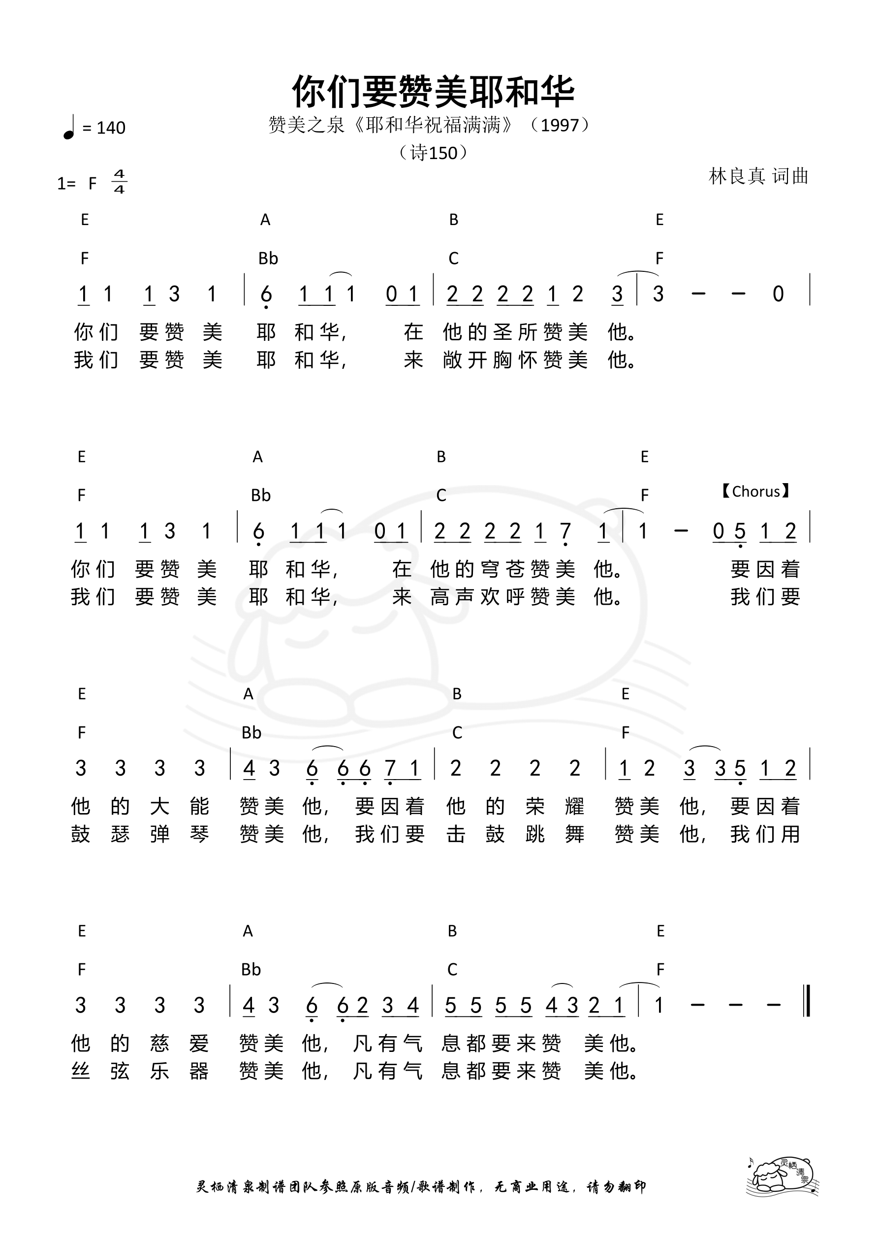 [138] 你们要赞美耶和华(F调/赞美之泉)