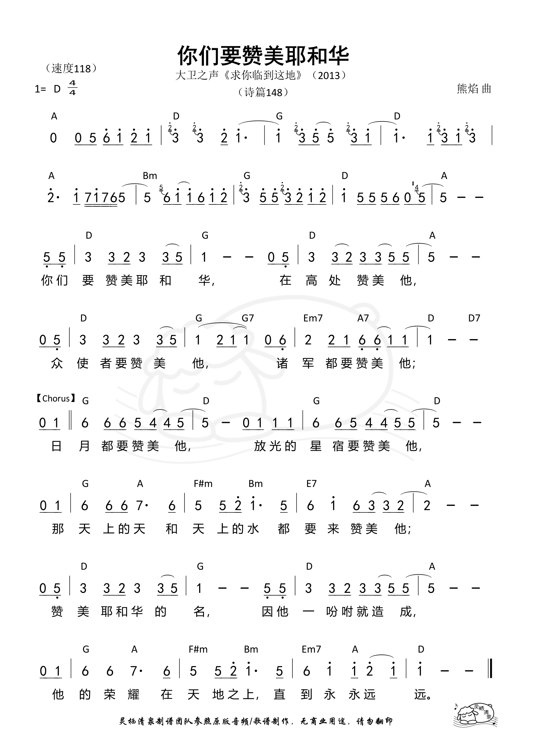[139] 你们要赞美耶和华(D调/大卫之声)